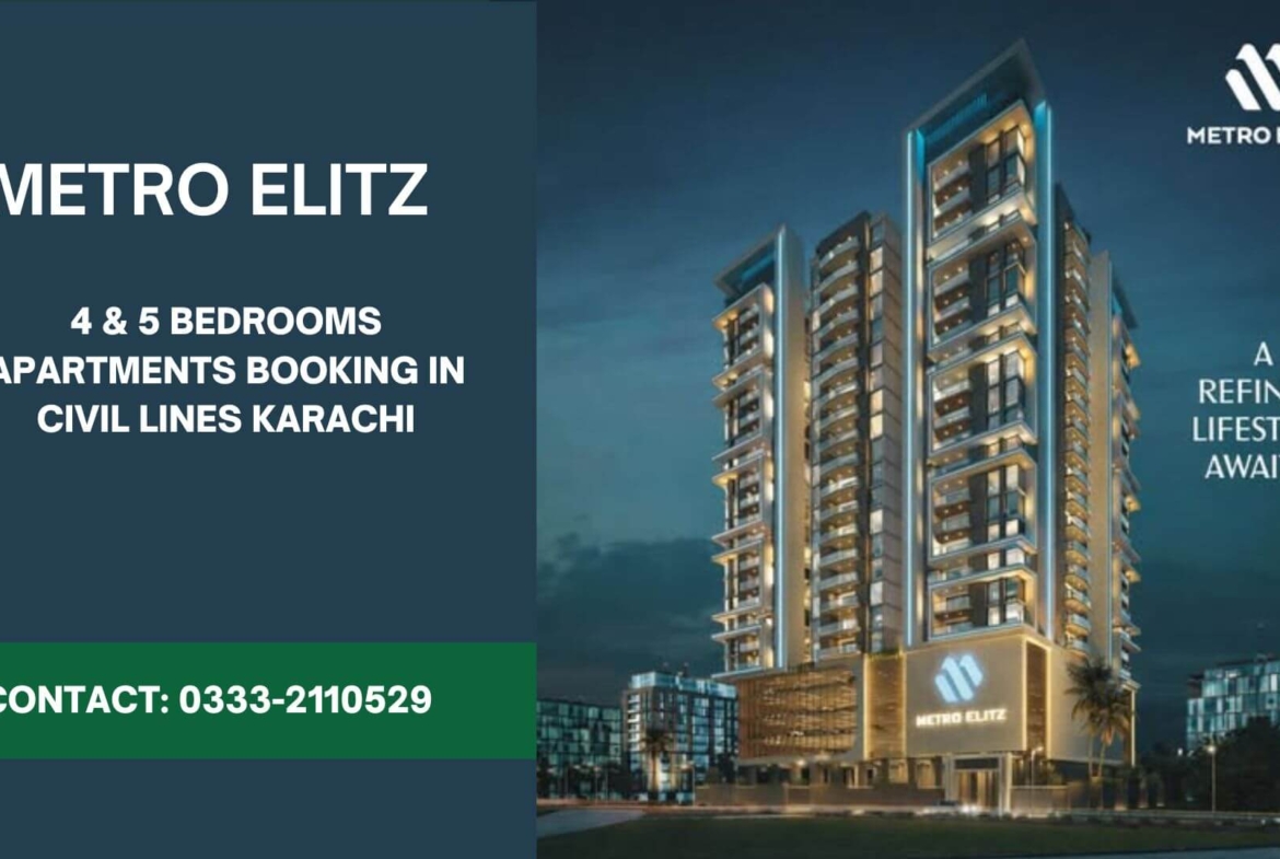 Civil Lines, Karachi’s most institutionally significant residential corridor, is home to the Karachi Gymkhana, Sindh Club, and Pakistan’s diplomatic enclave — and a 5 bedroom apartment new booking at Metro Elitz Civil Lines Karachi places your family’s future home at the centre of that address tier. The Type XL unit (4,525 sq. ft., proper west open) is priced at PKR 172,500,000 total — approximately PKR 38,122 per sq. ft. — with a booking amount of PKR 7,500,000. Overseas Pakistanis remitting via Roshan Digital Account (ROPM) can structure this as a foreign-currency-efficient acquisition, with monthly installments of PKR 7,500,000 from May ’26 through January ’27, stepping down to PKR 2,500,000 per month thereafter until possession.