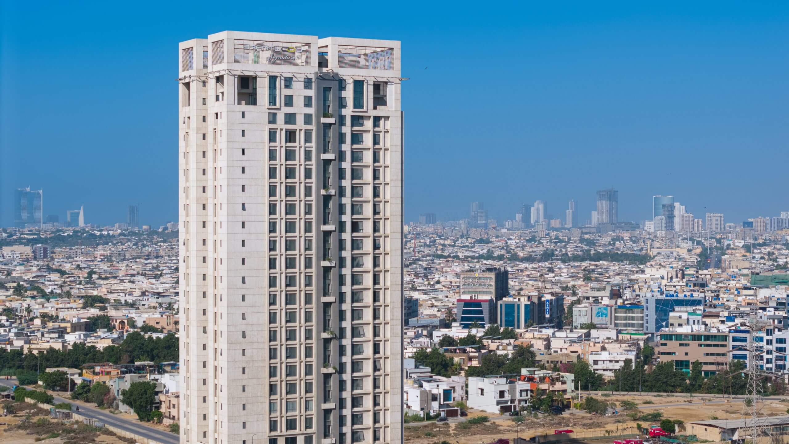Brentwood Signature 27, developed by Al‑Feroz (Pvt.) Ltd., is a 27-storey tower located in DHA Phase 7 Extension, Karachi, offering 57 premium residential units. This tower includes corner 3-bedroom apartments and luxurious 4-bedroom duplex penthouses, designed to deliver upscale living for families and professionals .