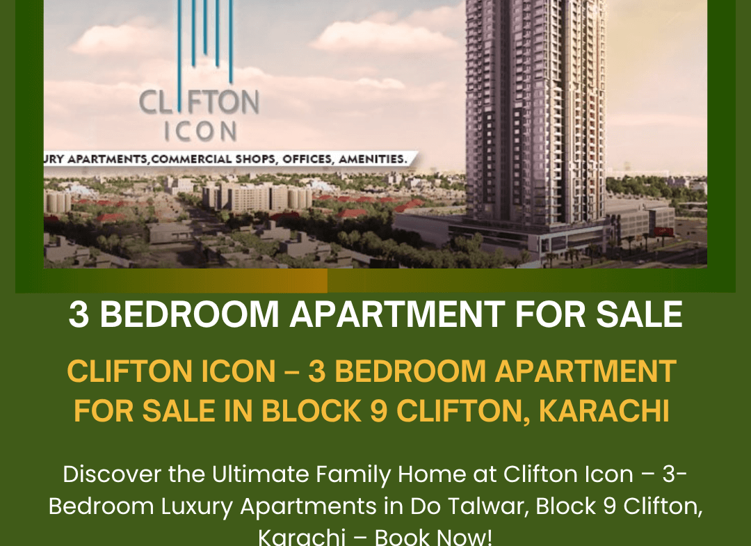 Welcome to Clifton Icon, located at Plot No. G-6, Do Talwar, Block 9 Clifton, Karachi. These 3-bedroom residential apartments, sized at approximately 1,800 sq ft, offer a rare combination of luxury, convenience and investment potential in the heart of Karachi’s premium Clifton neighbourhood. Whether you are a family seeking the ideal home or an investor looking for high-end apartments in Clifton Karachi for sale, Clifton Icon delivers both lifestyle and value.