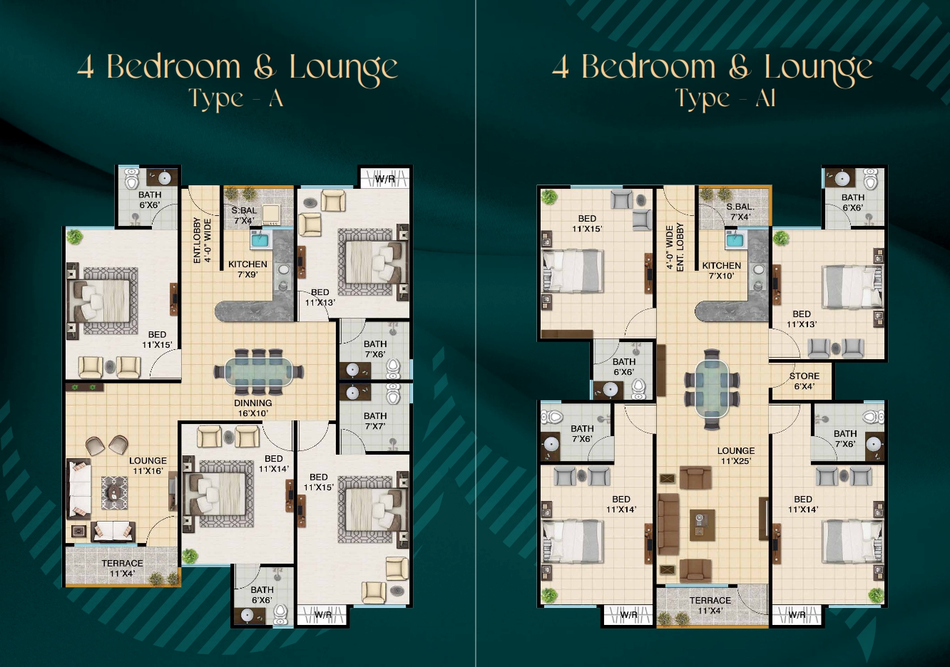 - 4-Bed + Lounge (1,839–2,042 sq. ft.): Priced from PKR 460 to 480 Lacs — generous floor plates for family living in a luxury apartment Karachi near business district address.