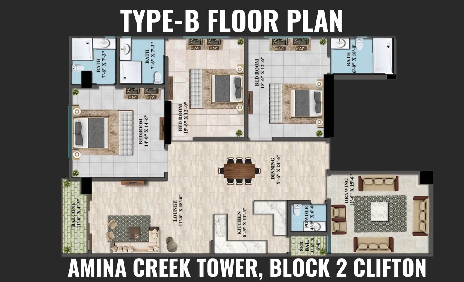Amina Creek Tower Type B Specifications – 1,925 Sq. Ft. at Clifton Block 2
